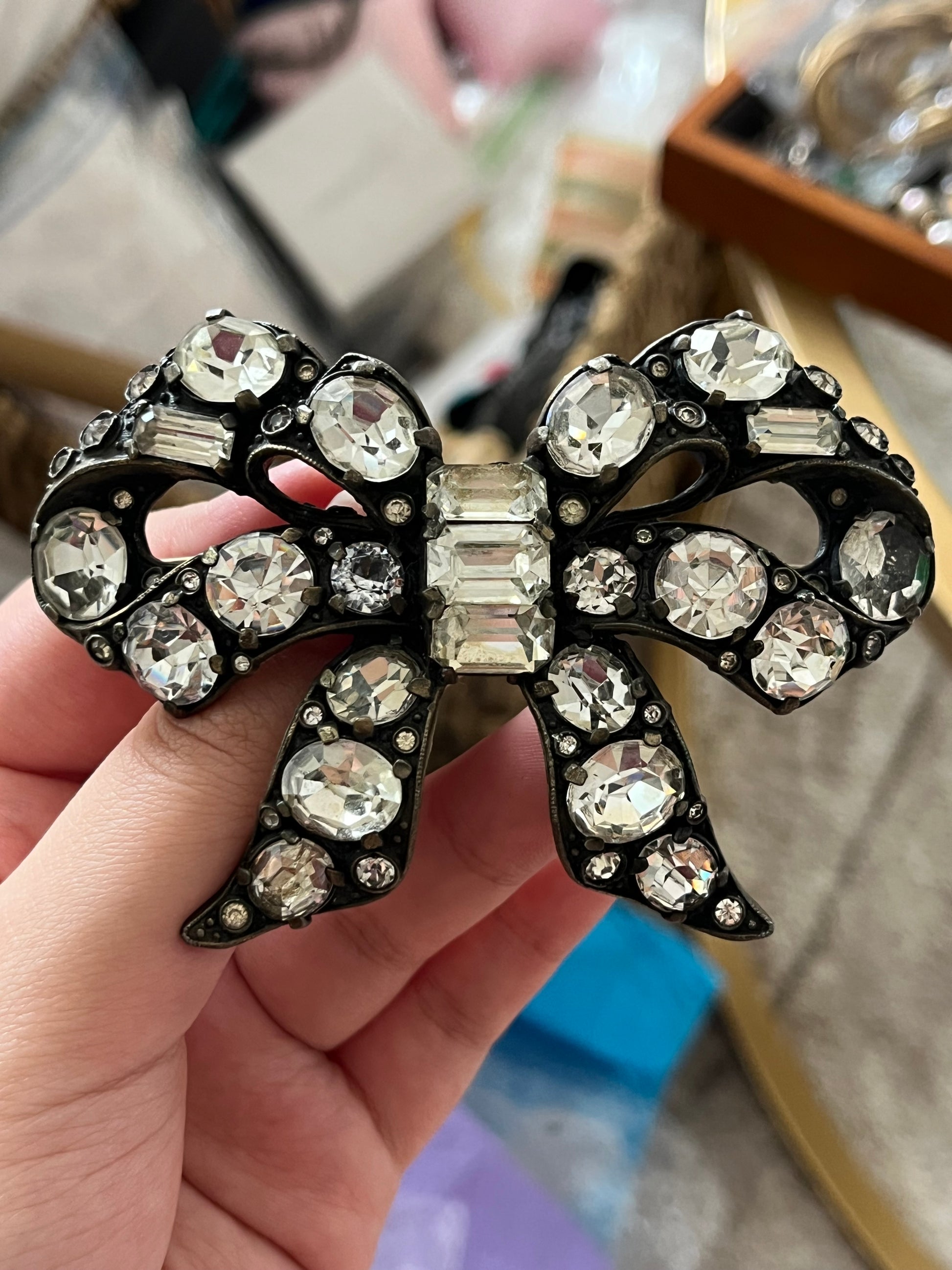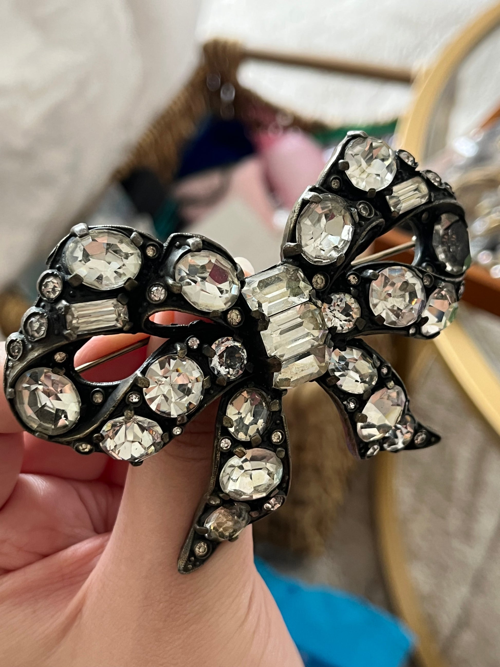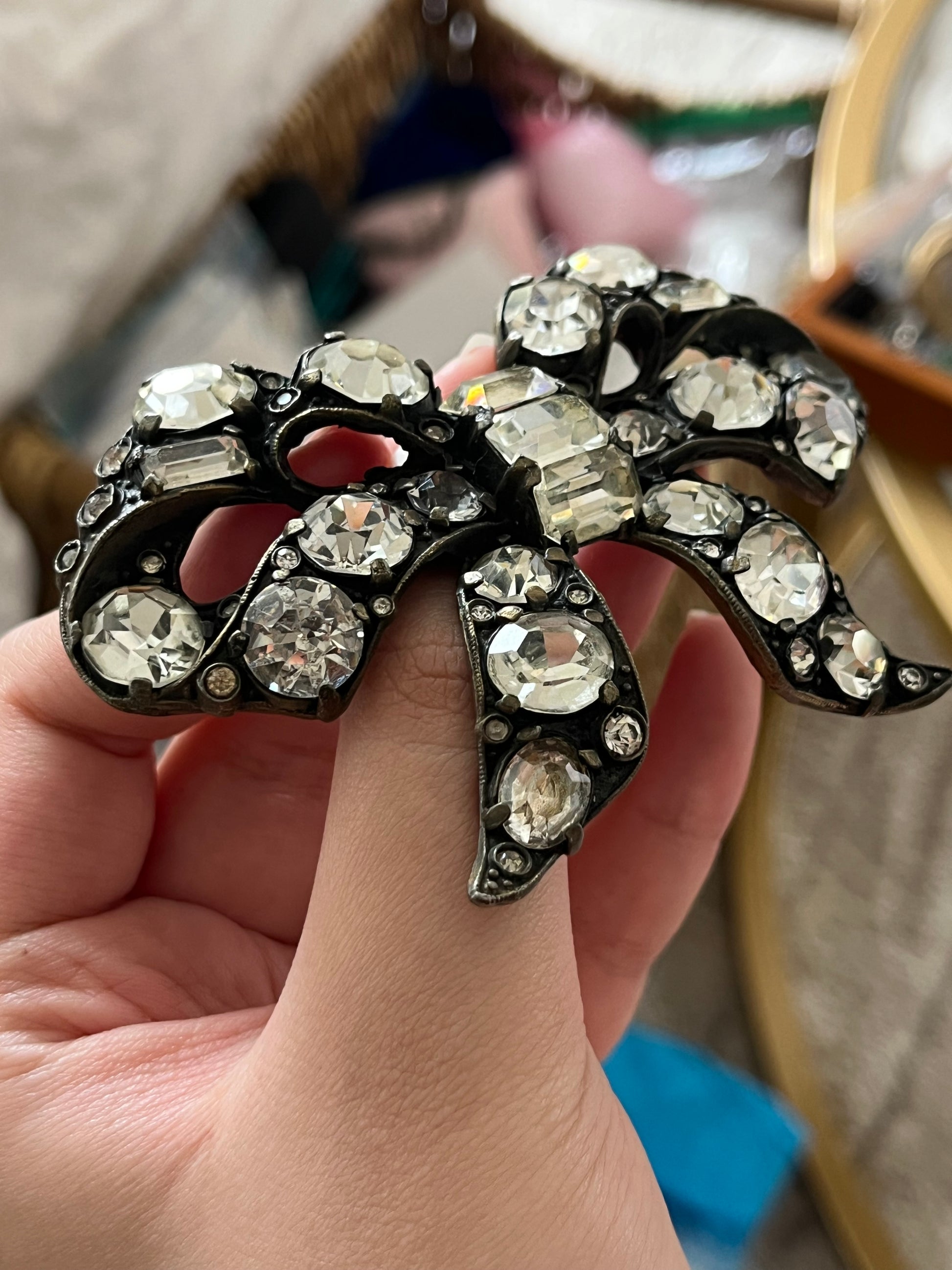 Vintage Eisenberg Original 1920s Bow Tie Butterfly Knot Large Rhinestone Bronze-Tone Brooch