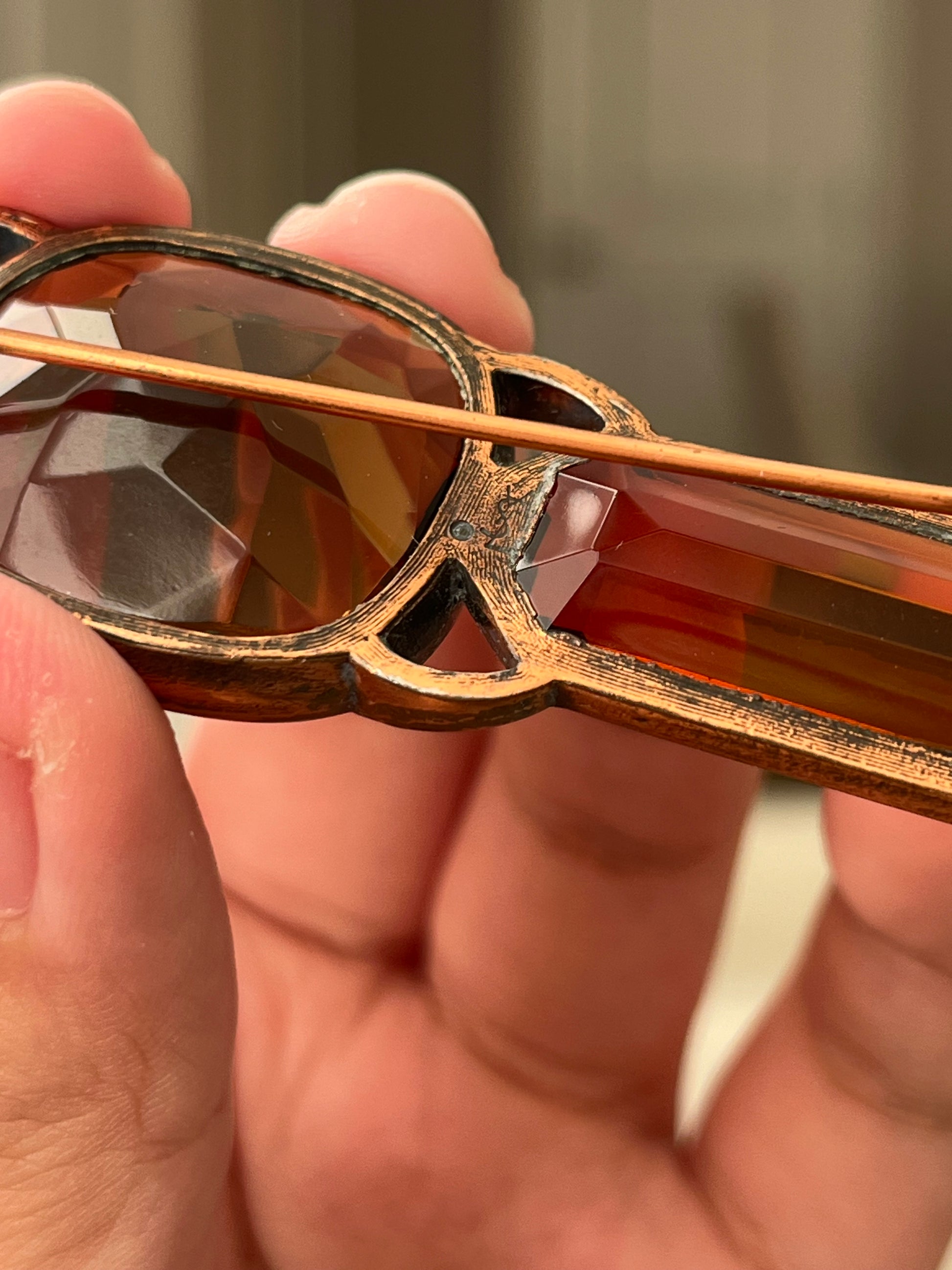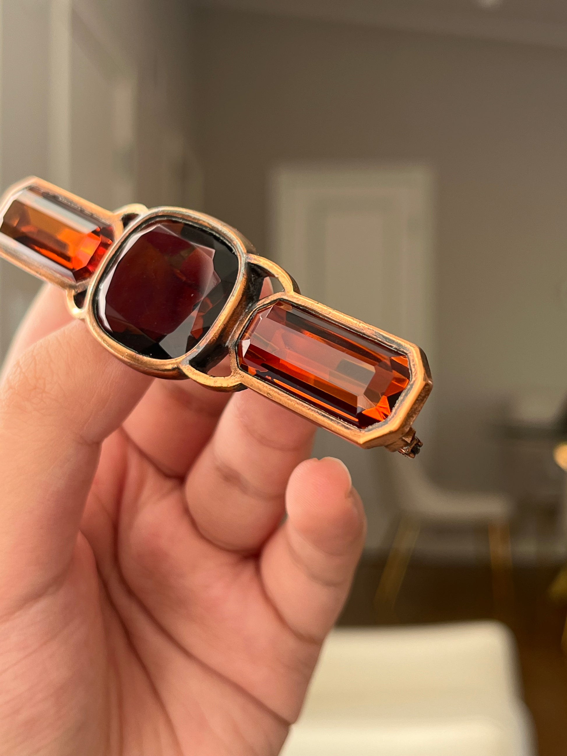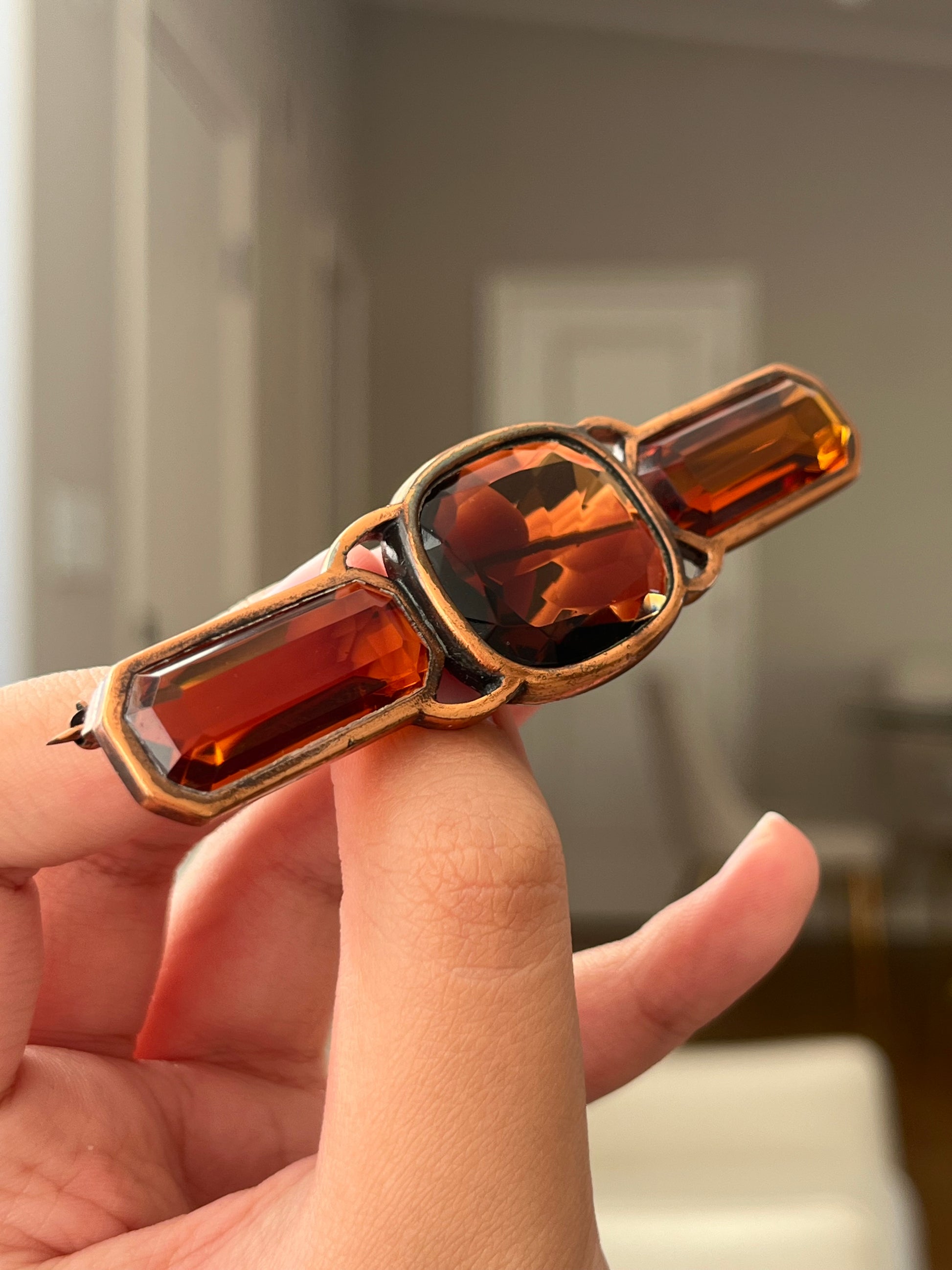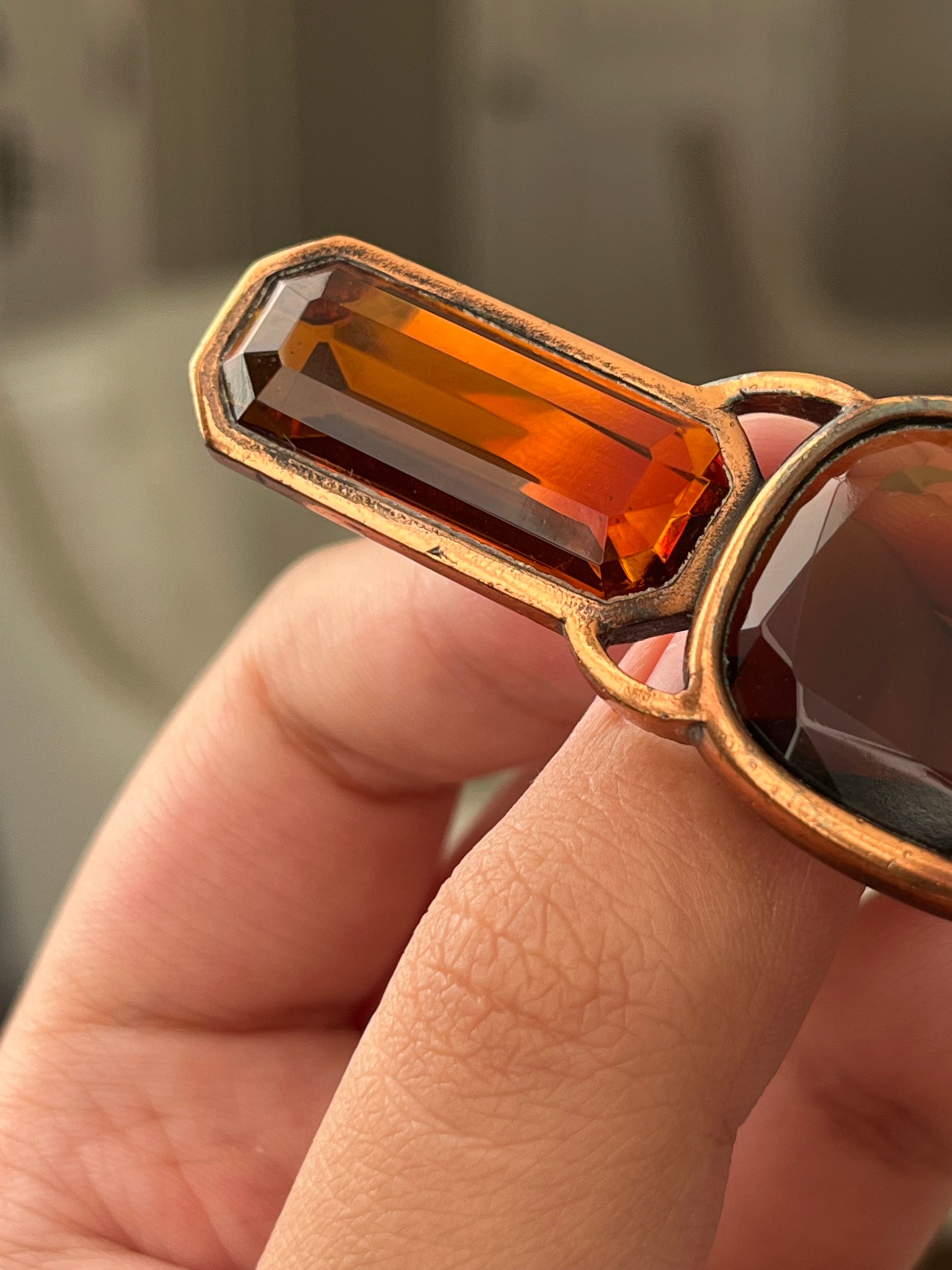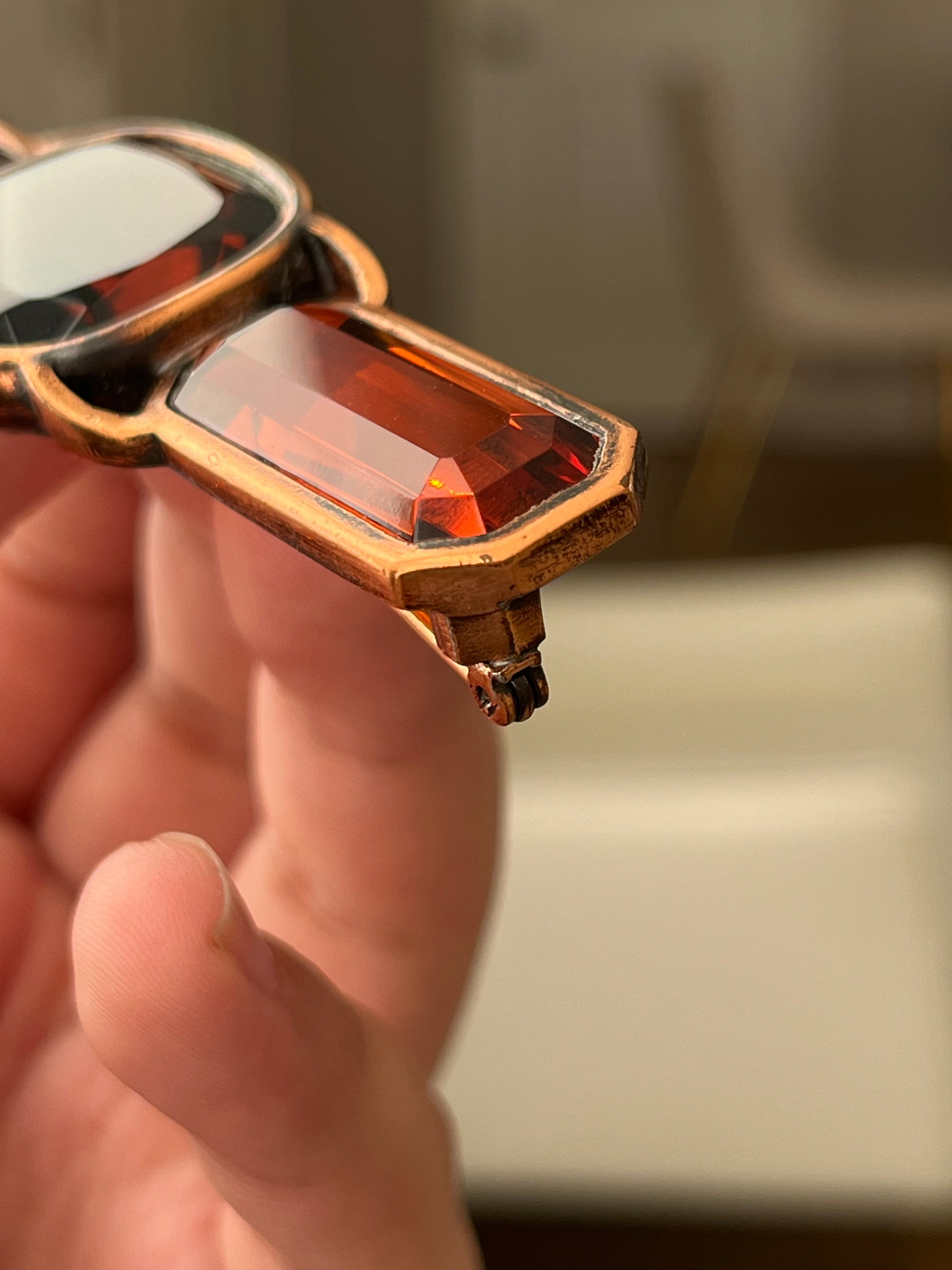 Vintage Yves Saint Laurent YSL Large Open Back Brown Rhinestone Rose Gold-Tone Bar Brooch