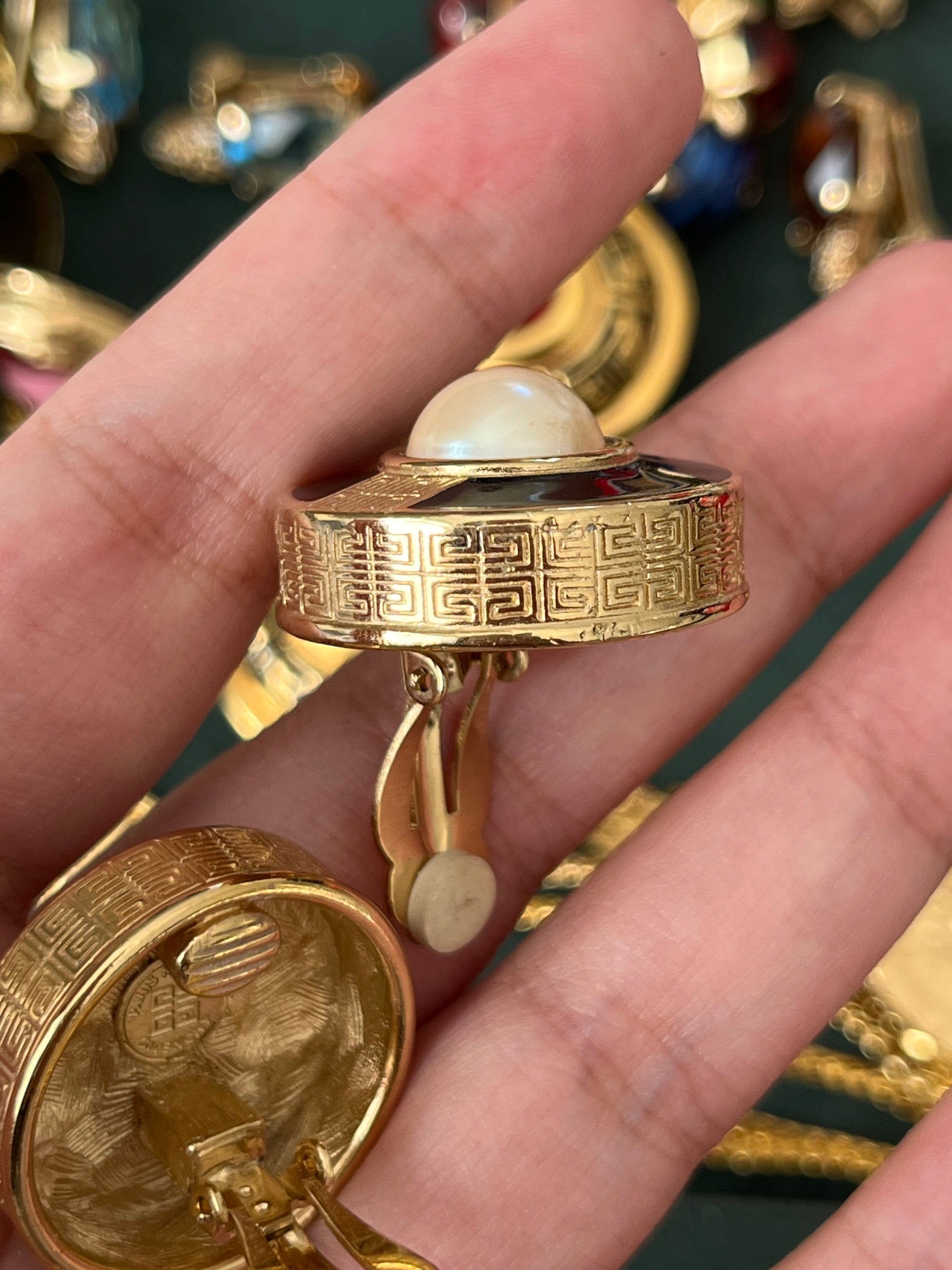 Vintage clip-on earrings by Givenchy, signed as Givenchy's logo on the back and "GIVENCHY © PARIS - NEW YORK" on the back of the clips.