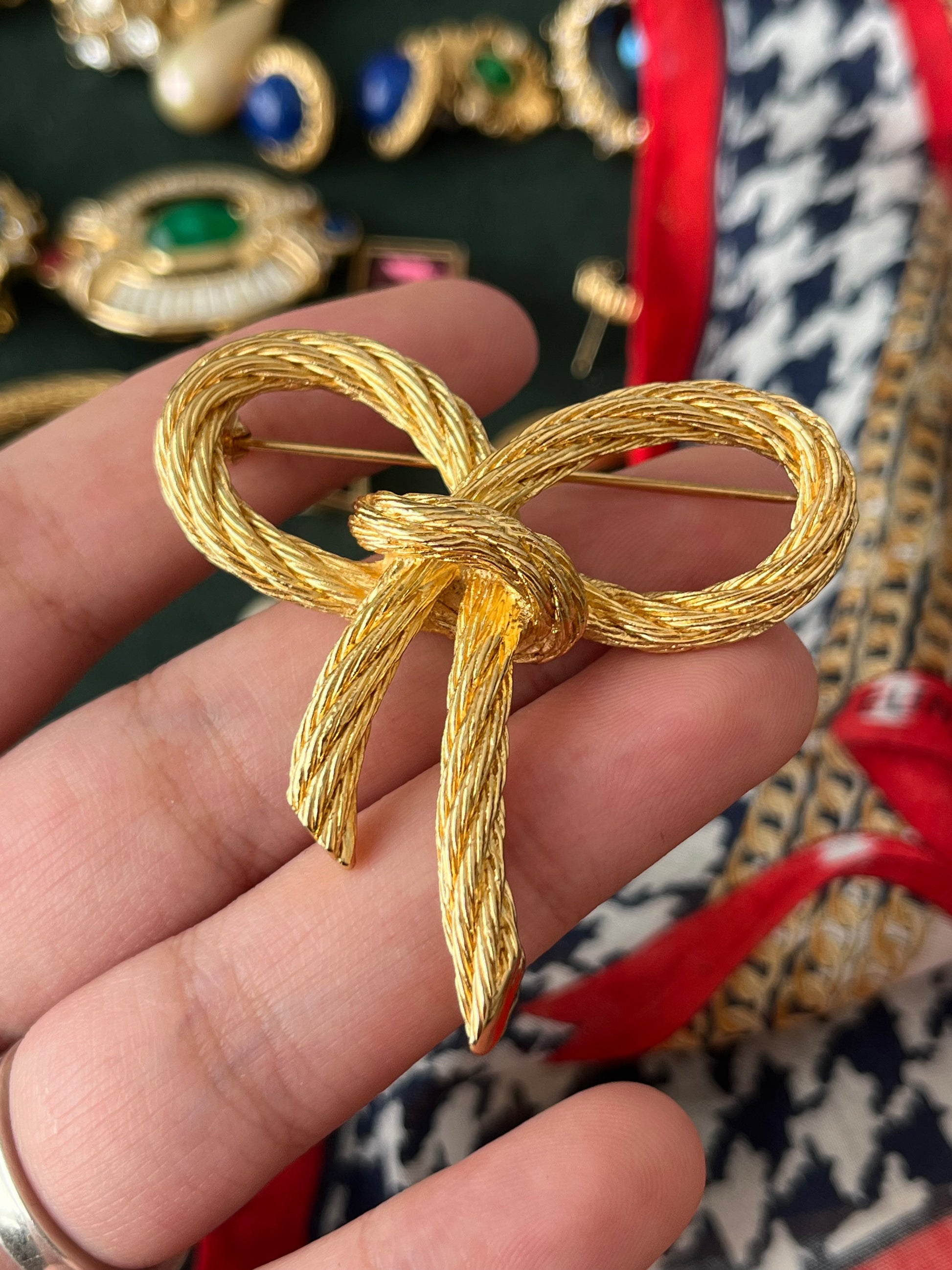 Vintage Christian Dior "Rope" Collection Bow Tie Butterfly Knot Braided Rope Brushed Gold-Tone Brooch